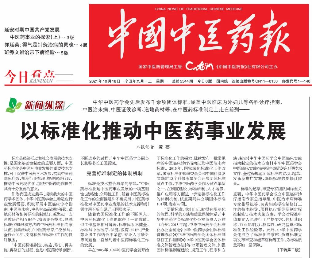 作為我國成立最早、規(guī)模最大的中醫(yī)藥學術(shù)團體,中華中醫(yī)藥學會主動適應行業(yè)發(fā)展需要,積極開展中醫(yī)臨床診療指南、中醫(yī)治未病、中藥材商品規(guī)格等級、道地藥材等相關(guān)標準的制修訂,凝聚起一支醫(yī)教研產(chǎn)相互配合、精通業(yè)務技術(shù)、熟悉標準化知識和方法的中醫(yī)藥標準化專家隊伍,推動形成了中醫(yī)藥專家廣泛參與,全行業(yè)關(guān)注、支持和參與標準化工作的良好氛圍。