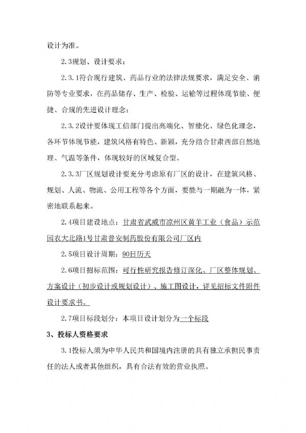 甘肅普安制藥股份有限公司年產5000萬盒(3億支)宣肺止嗽合劑等液體制劑生產線升級改造項目設計招標公告