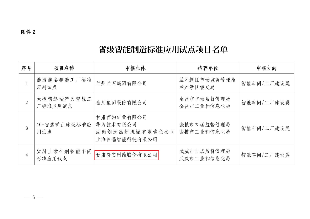 “三抓三促”踐行中 ᅵ 【喜報】甘肅藥業集團普安制藥入選省級智能制造標準應用試點項目名單