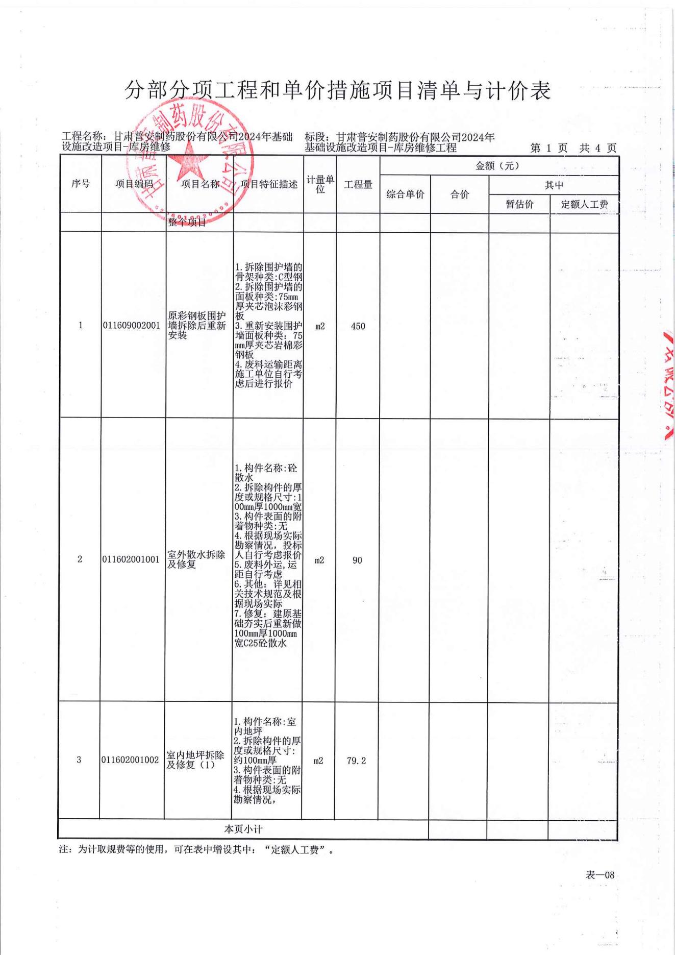 甘肅普安制藥股份有限公司2024年基礎設施改造項目-庫房維修工程施工招標公告