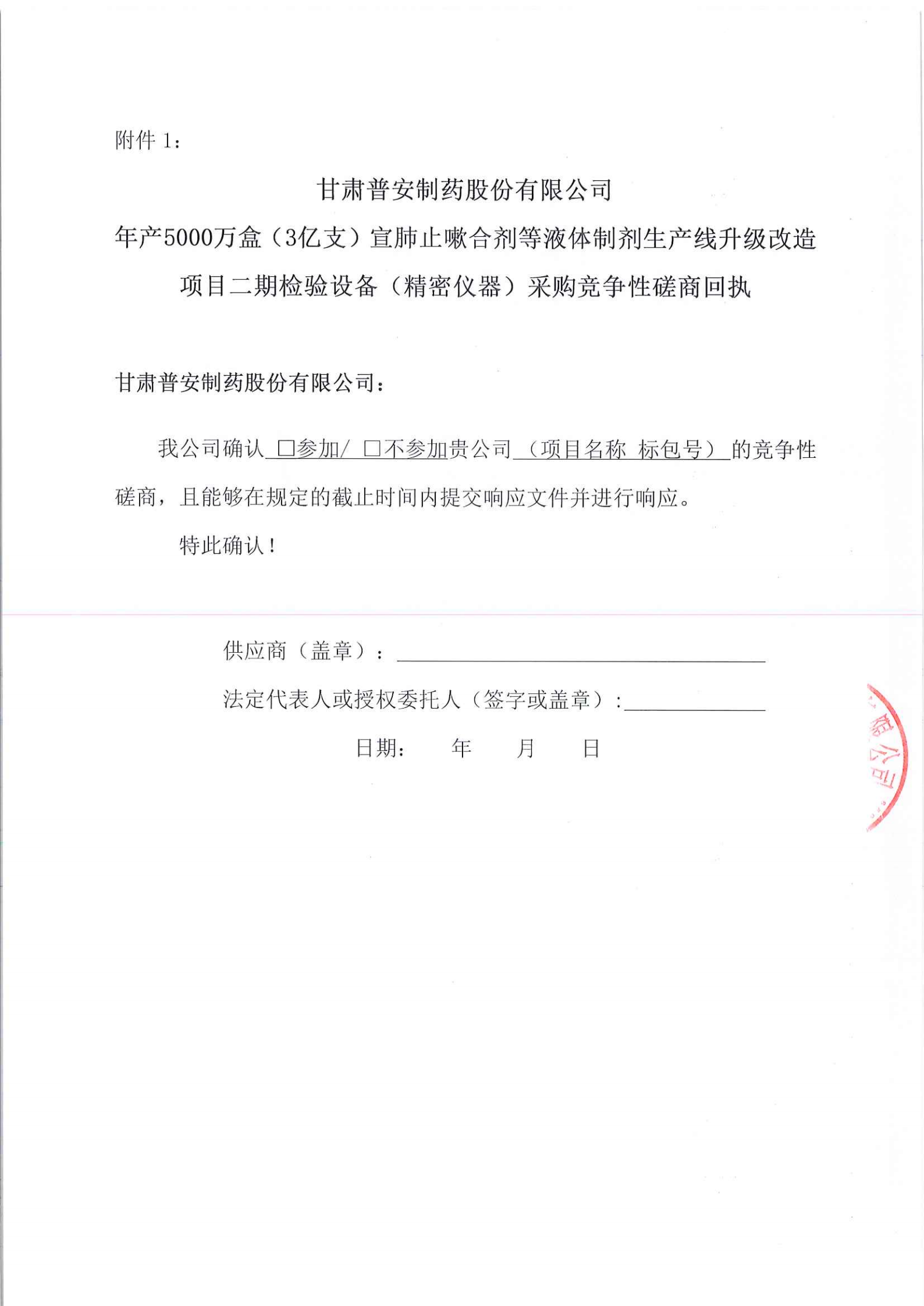 甘肅普安制藥股份有限公司年產5000萬盒(3億支)宣肺止嗽合劑等液體制劑生產線升級改造項目二期檢驗設備(精密儀器)采購競爭性磋商公告