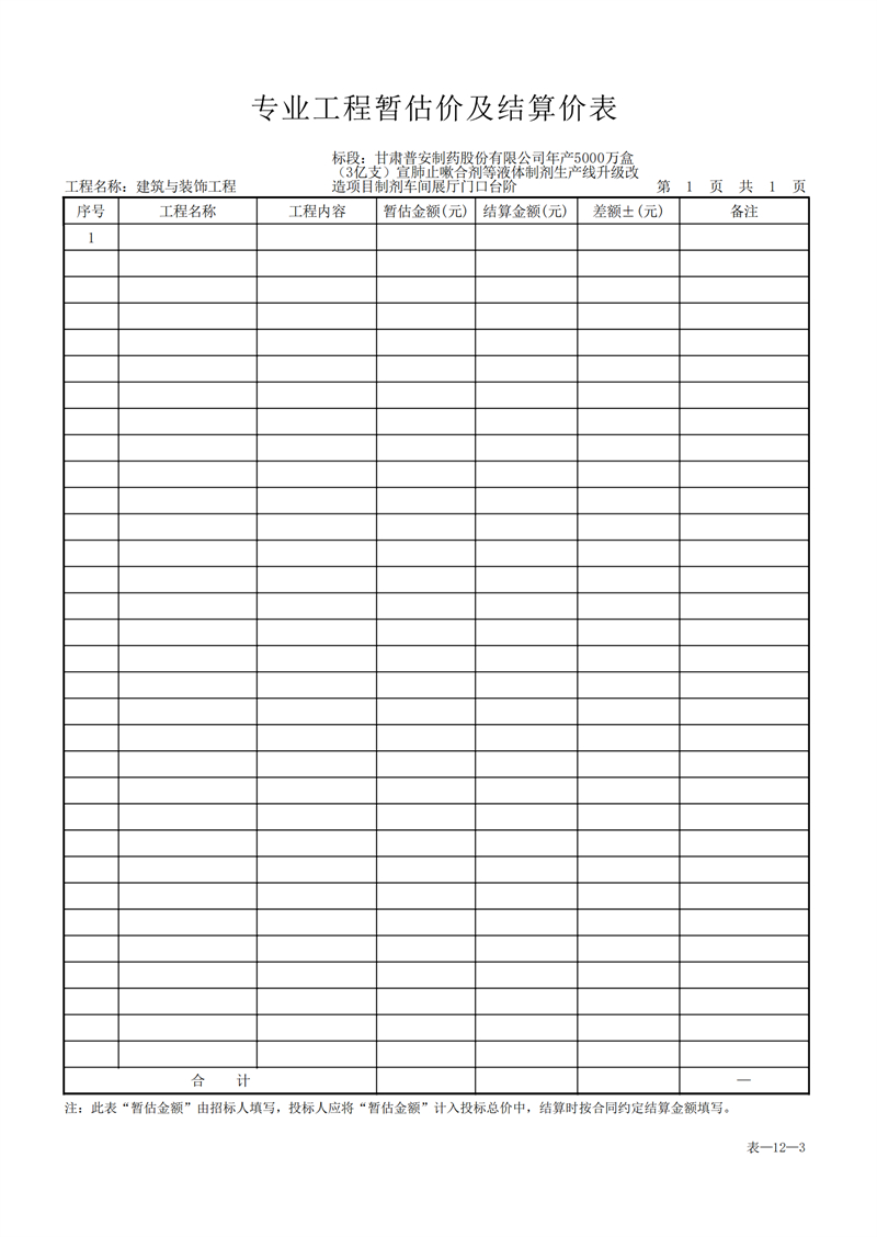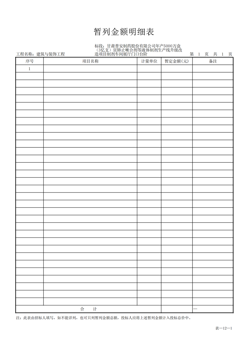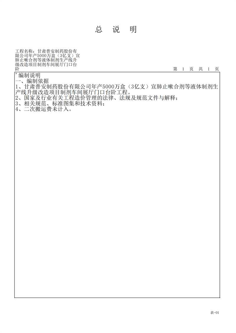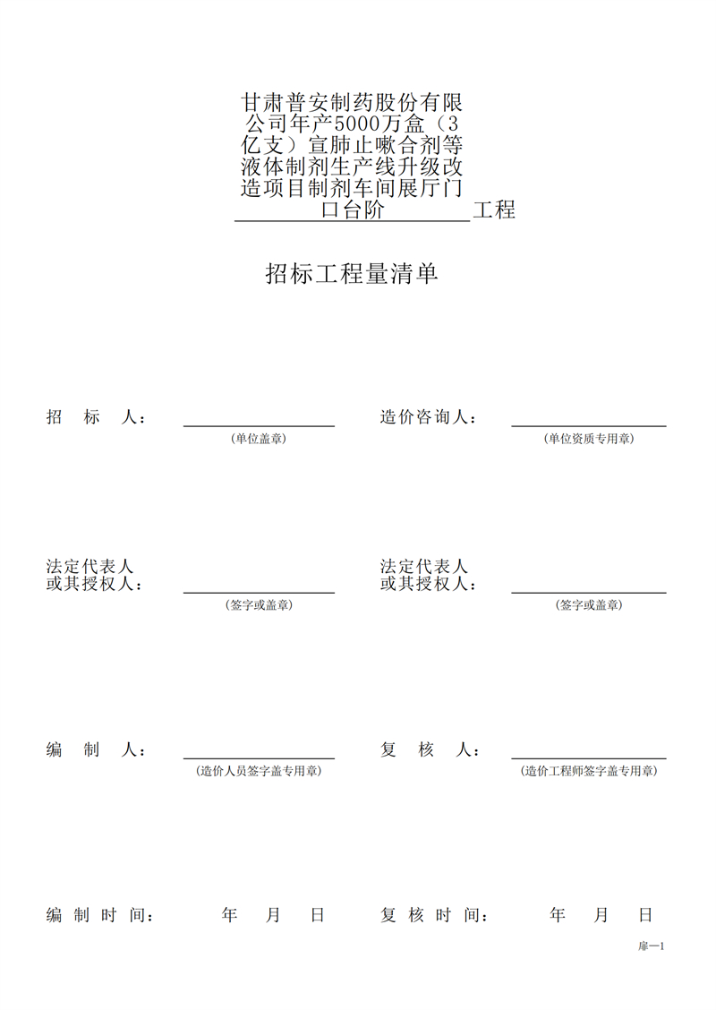 甘肅普安制藥股份有限公司年產5000萬盒(3億支)宣肺止嗽合劑等液體制劑生產線升級改造項目制劑車間展廳門口臺階工程招標公告