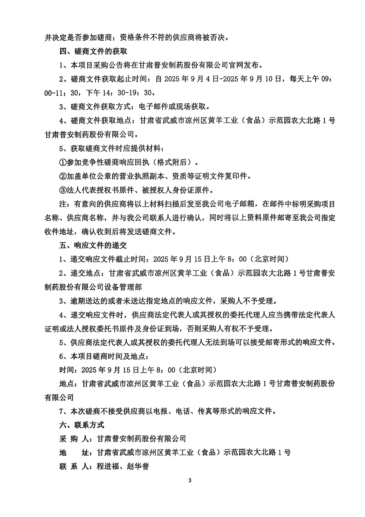 甘肅普安制藥股份有限公司三維裹包機(jī)設(shè)備采購(gòu)競(jìng)爭(zhēng)性磋商公告