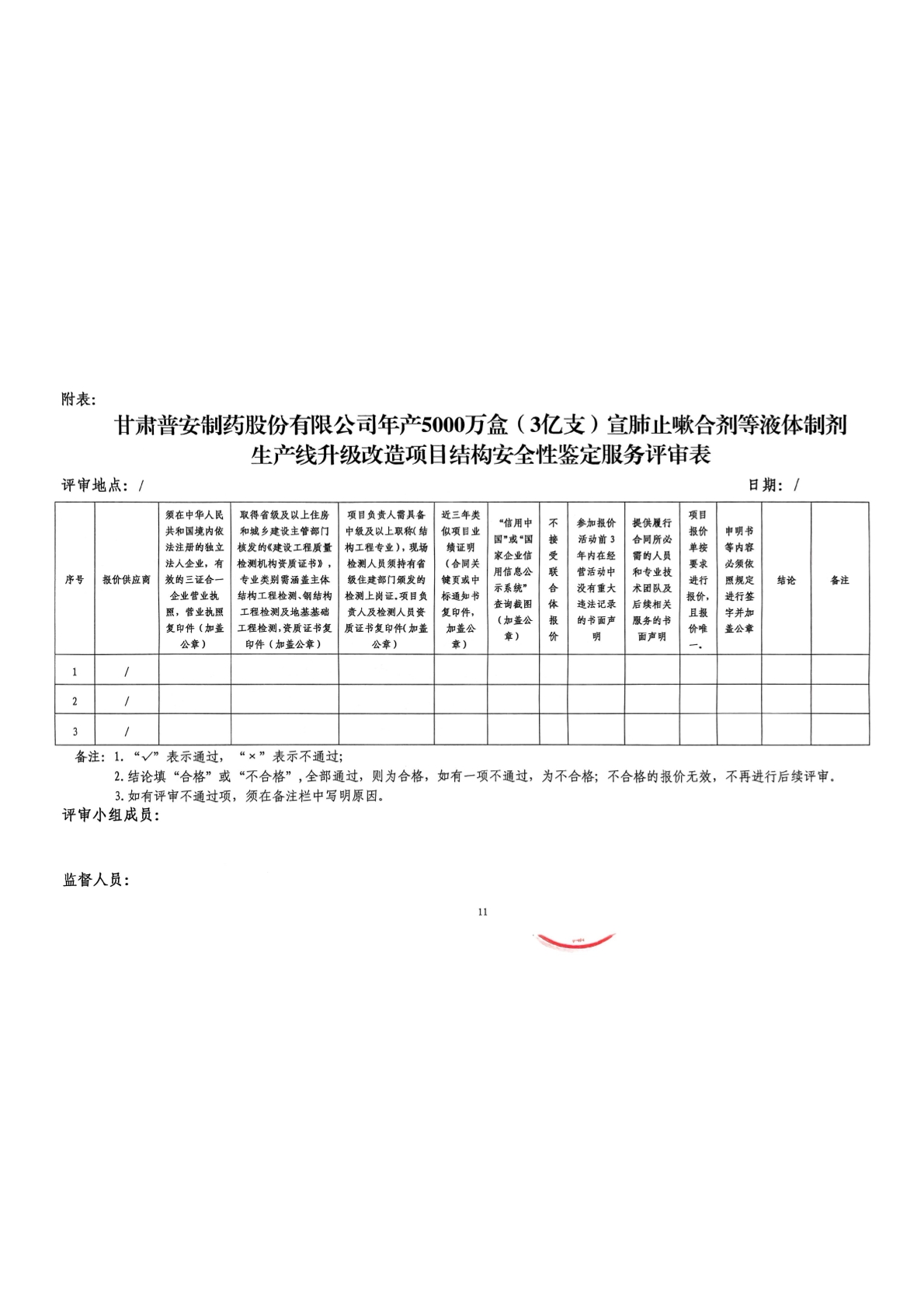 甘肅普安制藥股份有限公司年產5000萬盒(3億支)宣肺止嗽合劑等液體制劑生產線升級改造項目結構安全性鑒定服務詢價公告
